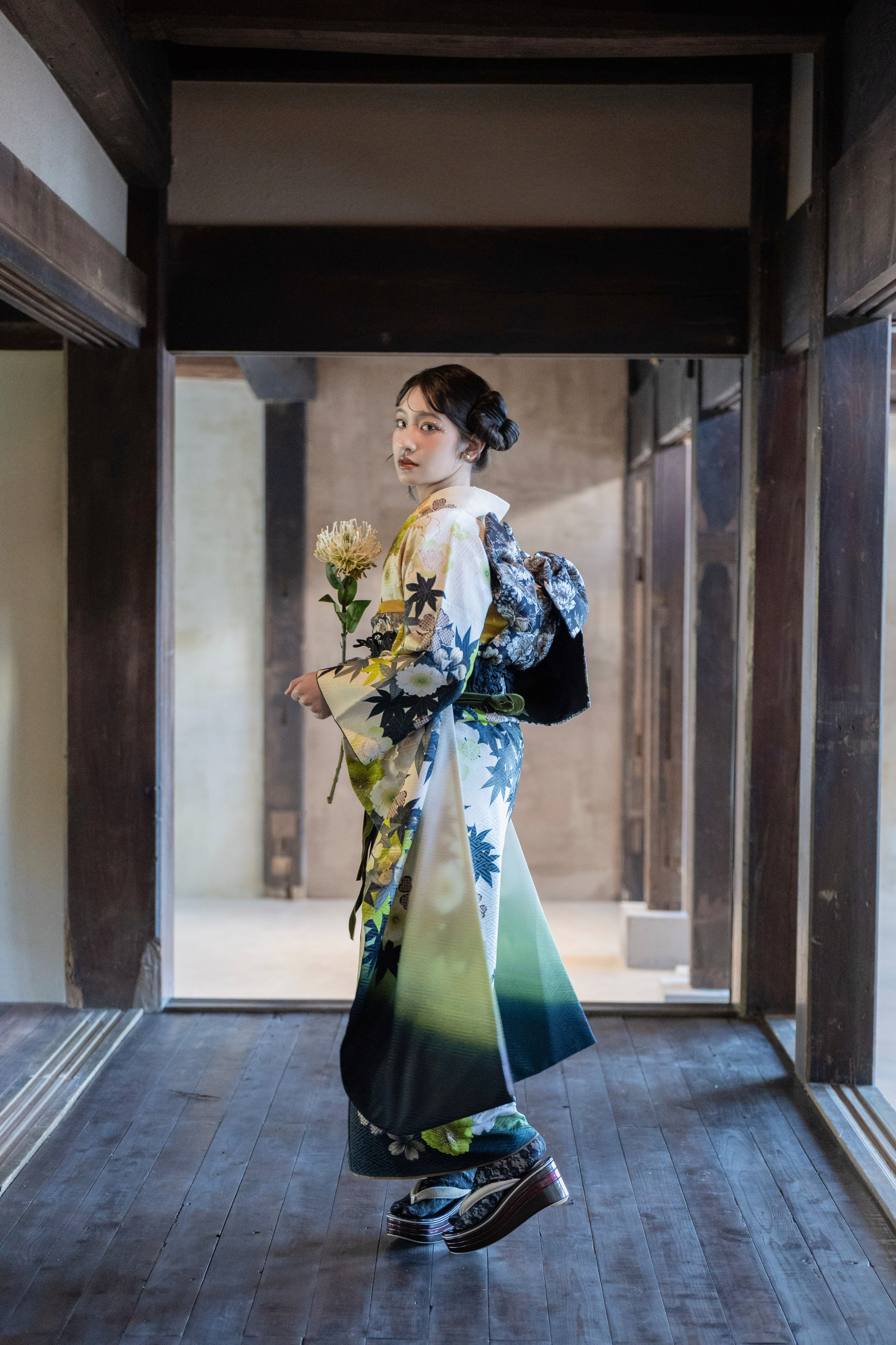 昔ながらの古典着物もイマドキな小物と合わせることで雰囲気がガラッと変わります。