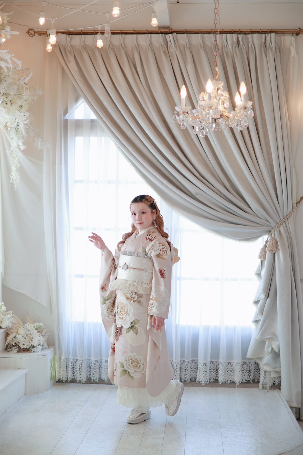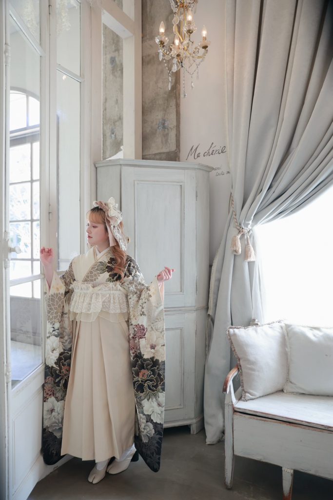 洋風なジルスチュアートのお着物はボンフルールのスタジオにもぴったり!