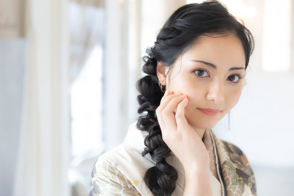 人気の編みおろしはふわっと顔周りも華やかに見せてくれます!
