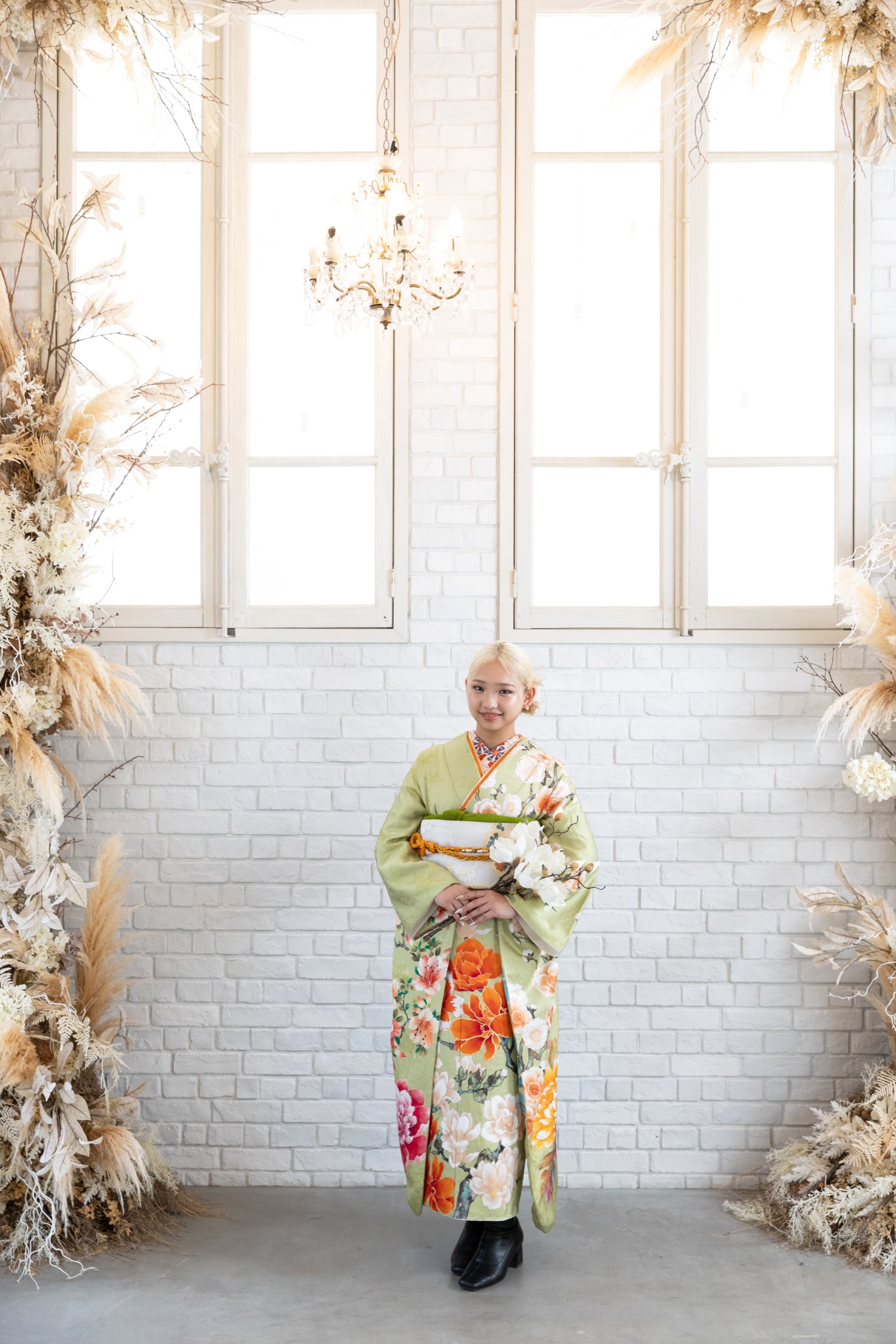 ボンフルールのスタジオは白を基調としたハウススタジオになりますので、お振袖の柄やデザインがよく映えて、より華やかなお写真を残すことが出来ます!